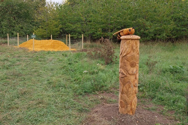Volunteers have helped transform Broom Road Recreation Ground, which was once mainly used for sports into a multi-purpose space for nature and sport lovers alike. The eastern side of the ground has been developed into a nature conservation area, featuring vibrant wildflower meadows and newly planted native black poplar trees. To further promote awareness and appreciation of local wildlife, three beautifully carved wooden sculptures, including a hedgehog, a bee, and a fox, have been installed on site.